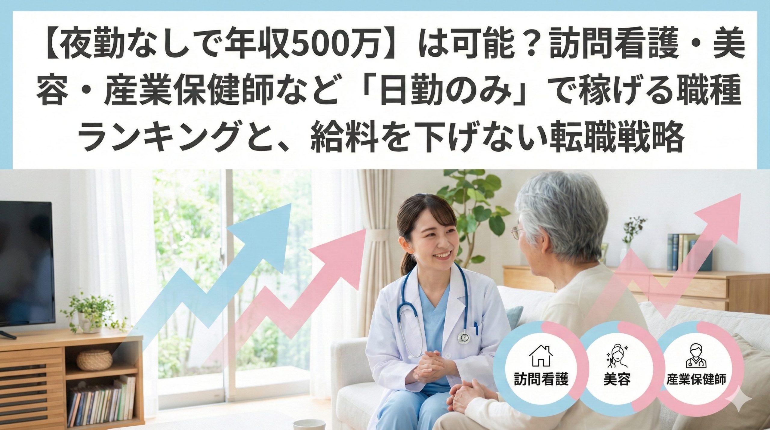 確かに、近所の内科クリニックや外来パートに行けば、年収350万円程度に下がるでしょう。 しかし、視点を少し変えて**「稼げる業界」**を選べば、夜勤を一切しなくても、年収500万円以上をキープ、あるいは今以上に稼ぐことは十分に可能です。