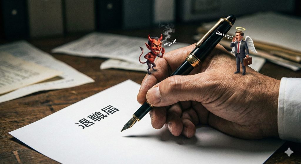 これは親切心ではありません。罠です。 あなたが「退職届」にサインして提出してしまった瞬間、それは「解雇」ではなく**「合意退職(自分も納得して辞めた)」**になってしまいます。
