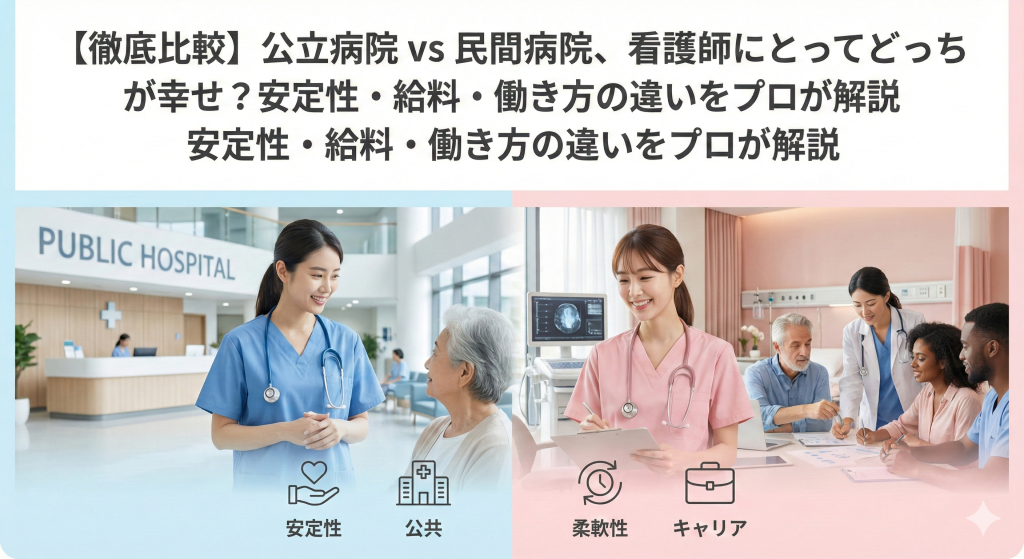 【徹底比較】公立病院 vs 民間病院、看護師にとってどっちが幸せ?安定性・給料・働き方の違いをプロが解説